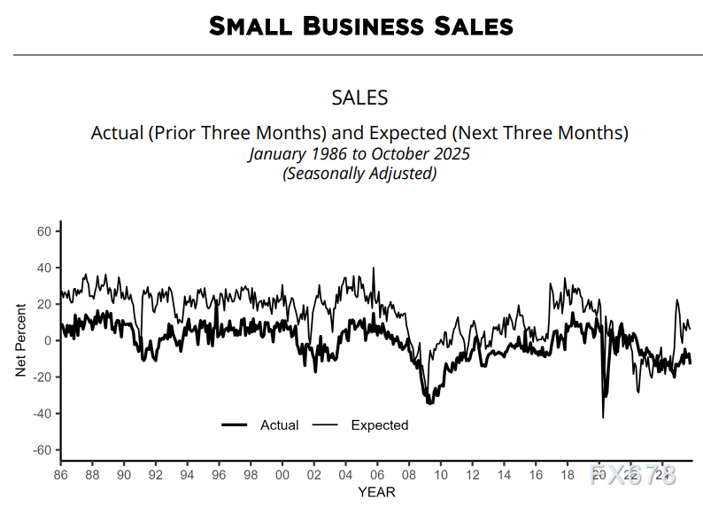 21%的企业主提高了平均销售价格(经季节性调整,较9月降3个百分点),仍高于13%的月度平均水平,通胀压力持续。